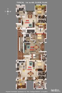 - 3 BHK (4 Units ) 1st- 4th Floor
